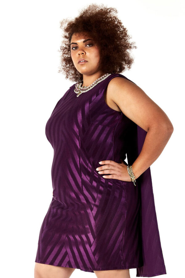 Hand Beaded Neckline Purple Cape Dress